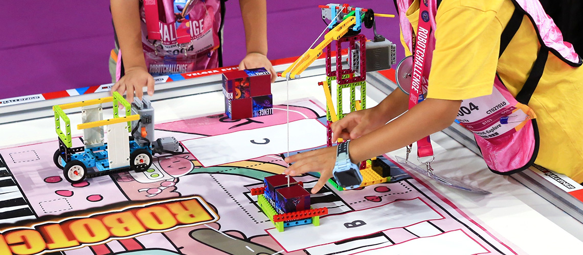 适合1-2年级学习机械动力阶段学员,使用积木器材散件,现场搭建电力驱动机器人,然后完成收集、吊装、转运物资3个连续任务。